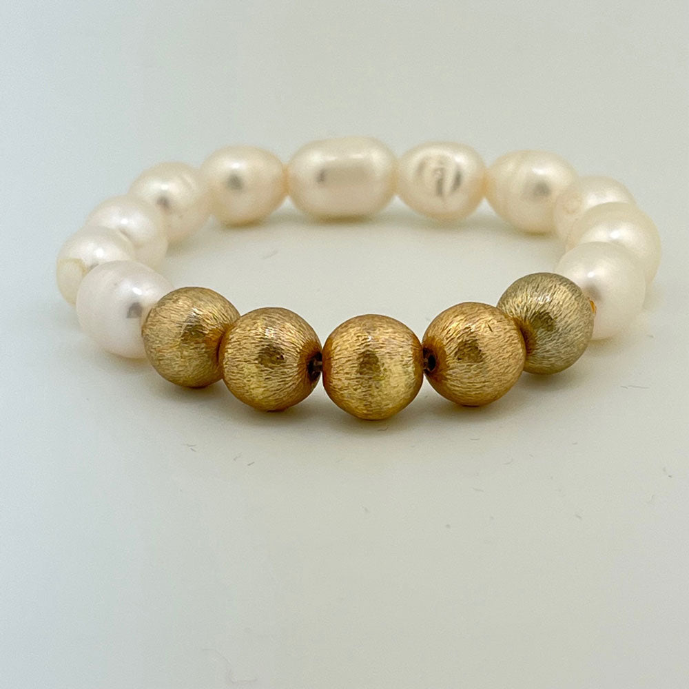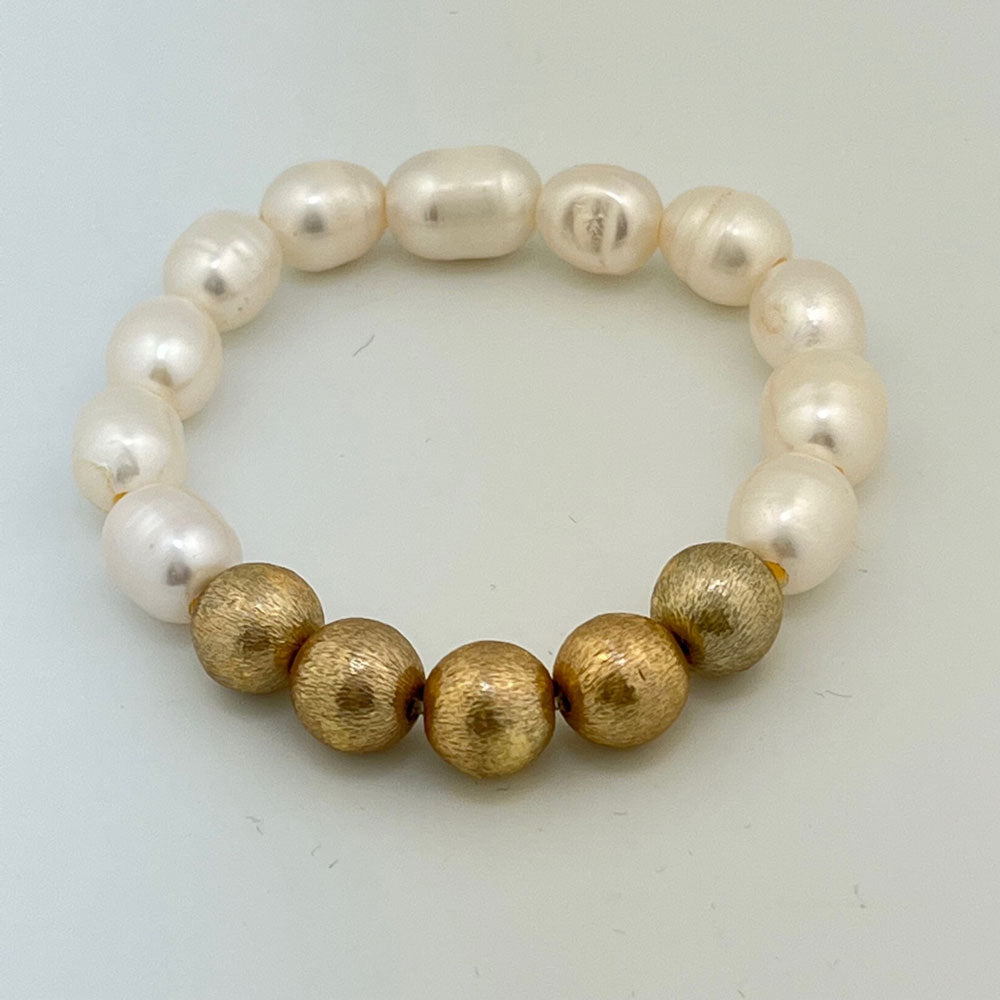 Freshwater Pearl with 10MM gold plated round bead stretch bracelet.