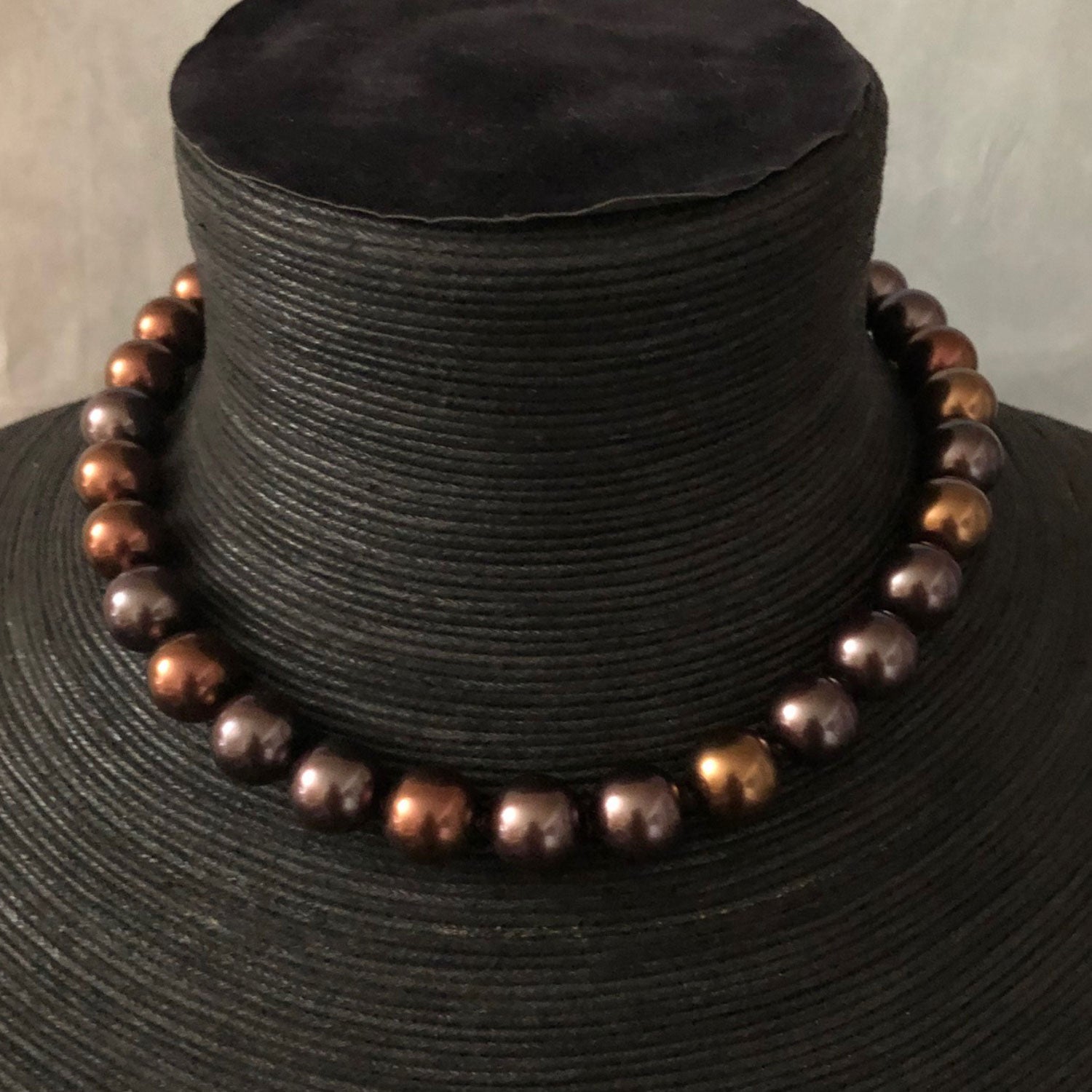 10MM tri-colored brown, knotted shell pearls with vermeil closure.