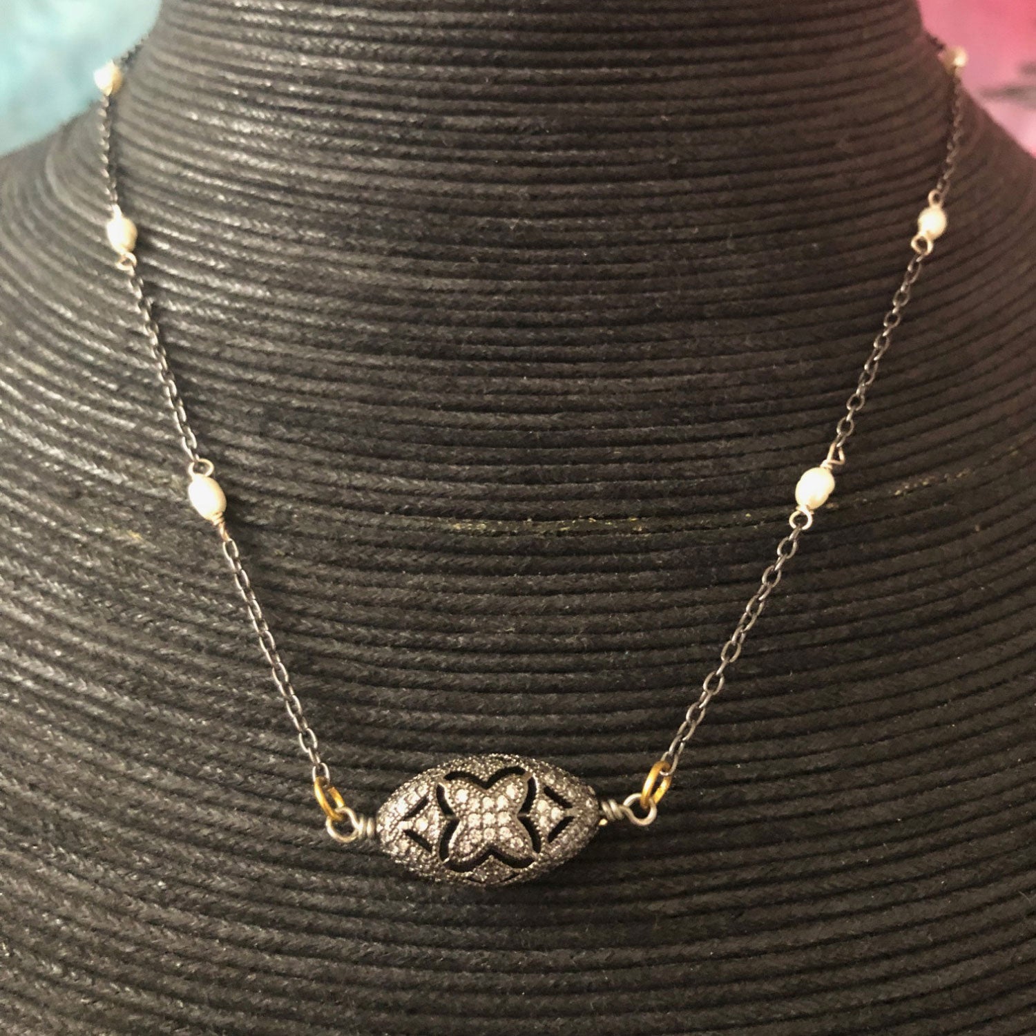 Antique silver and freshwater pearl chain with decorative CZ bead. Also available in gold.