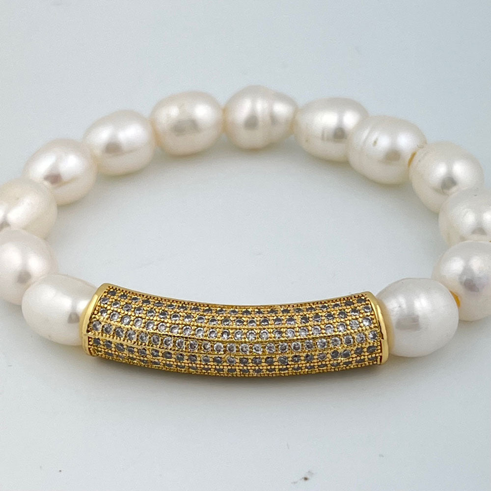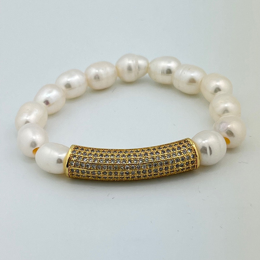 Freshwater Pearl with CZ bar stretch bracelet.
