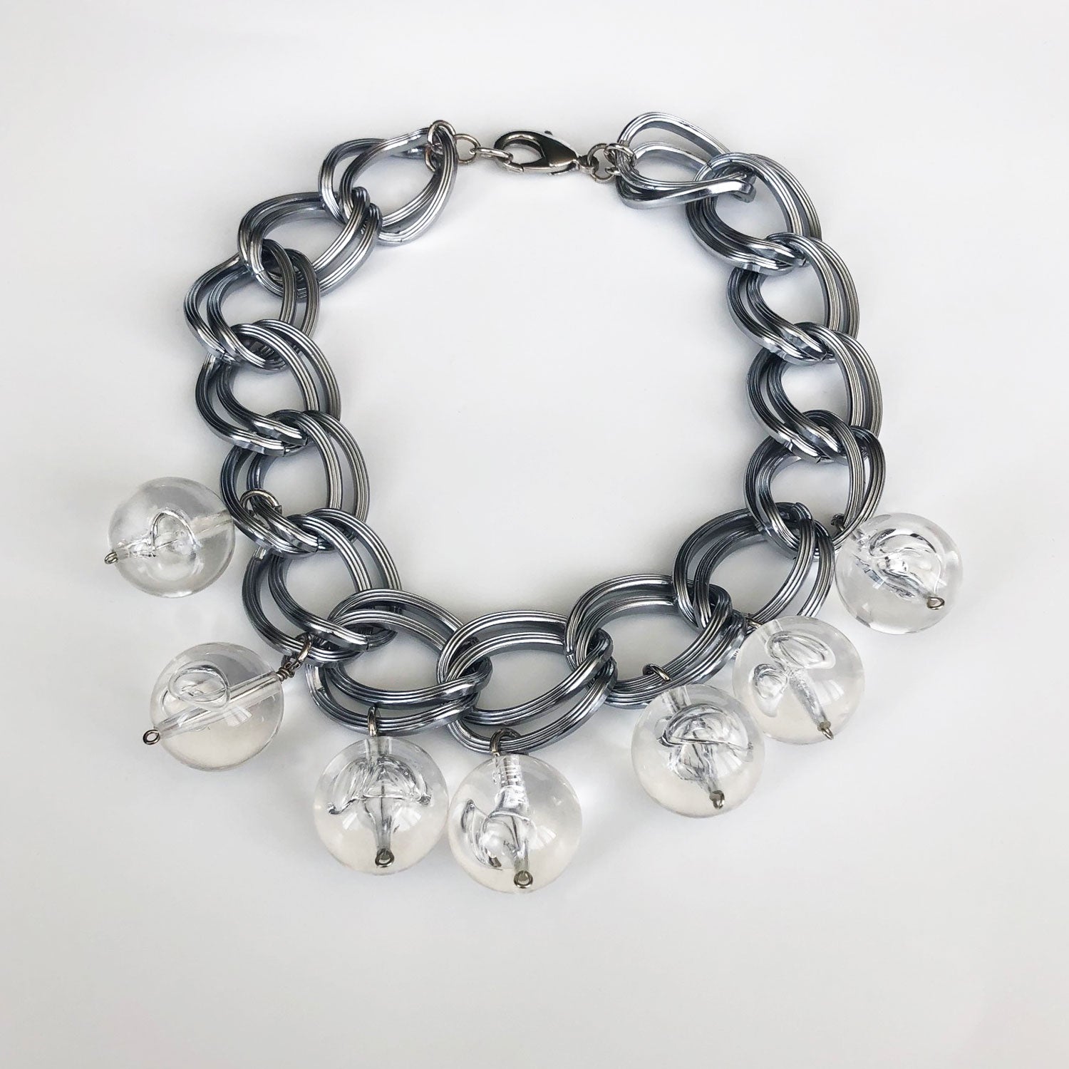 Double link silver chain choker with lucite balls.
